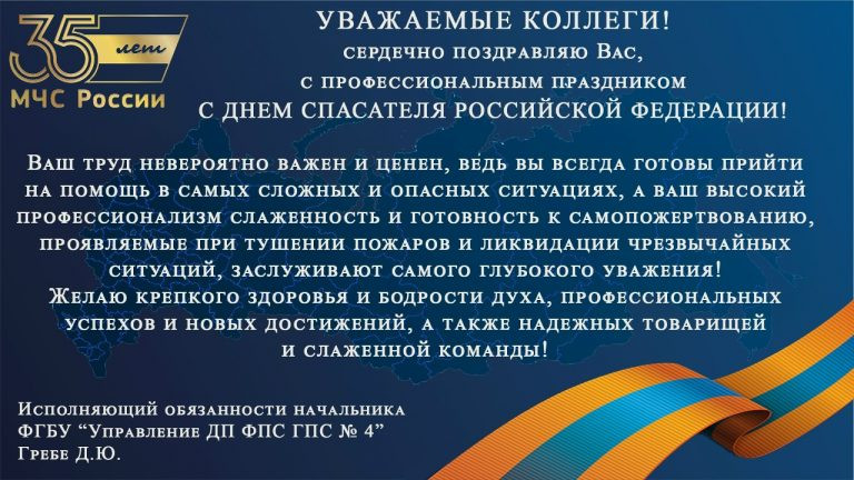 Уважаемые коллеги! Сердечно поздравляю Вас, с профессиональным праздником. С днем спасателя Российской Федерации! Исполняющий обязанности