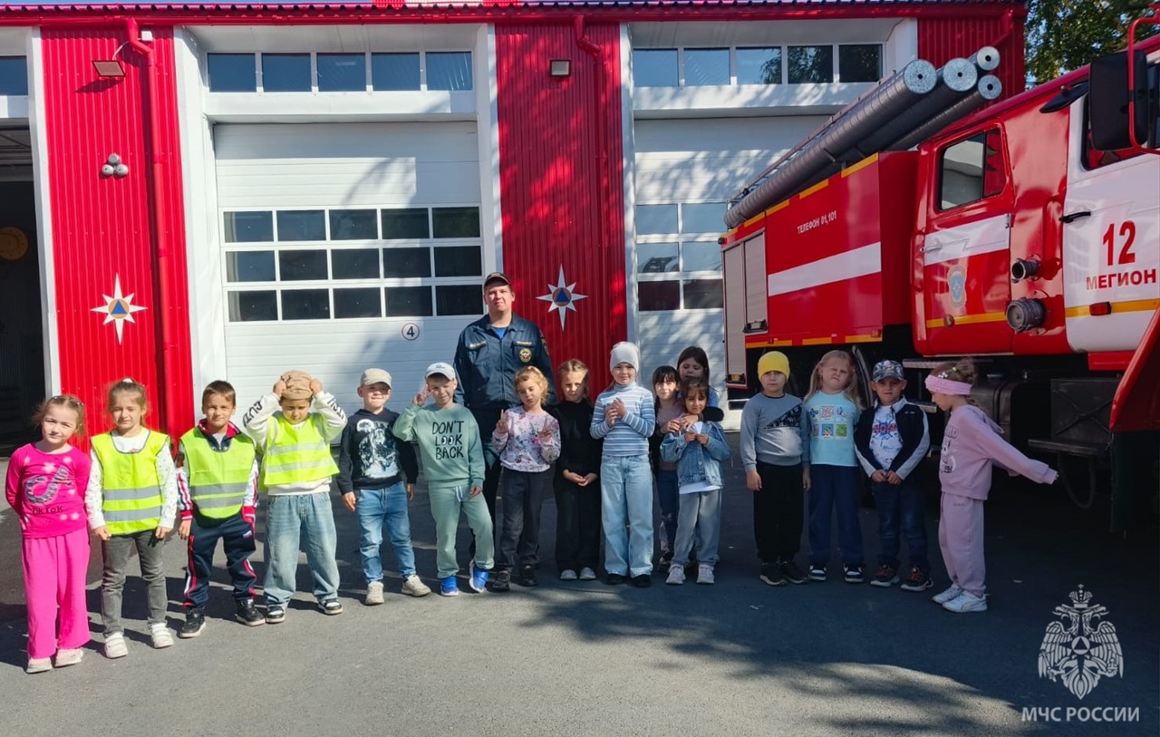 В начале сентября 2025 года прошли открытые уроки «Основы безопасности жизнедеятельности», приуроченные празднованию «Дня знаний», в общеобразовательных организациях города Мегион. Исполняющий обязанности начальника 12 пожарно-спасательной части отряда ФПС ГПС – Нижневартовский филиал ФГБУ «Управление ДП ФПС ГПС № 4» Чикризов Владимир Александрович, вместе с командиром отделения Каказовым Ильёй и пожарным-спасателем Зубенко Артёмом, провел увлекательный урок с воспитанниками детского сада № 15 «Югорка», который проходил на базе 12 пожарно-спасательной части.