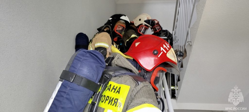 По замыслу учений, возгорание произошло в квартире на десятом этаже. Пока огонь бушевал внутри, в коридоре на 10 этаже создалось сильное задымление. К месту вызова были направлены силы и средства Федоровской зоны ответственности Сургутского местного пожарно-спасательного гарнизона по повышенному номеру вызова.