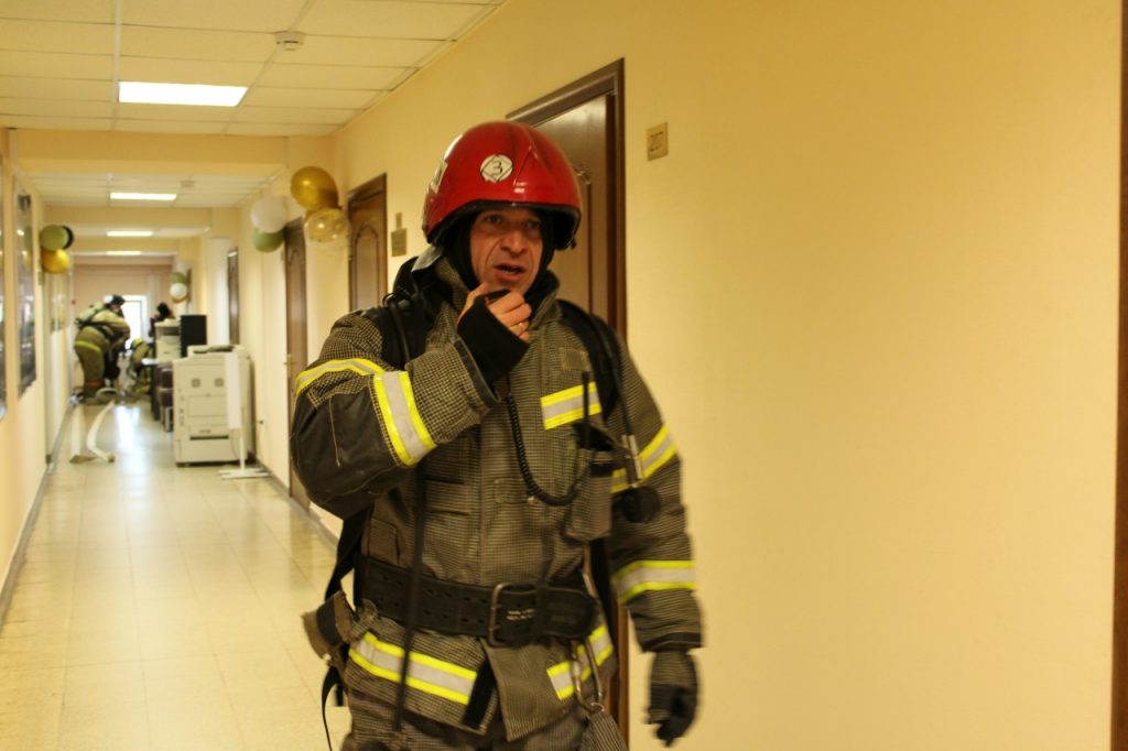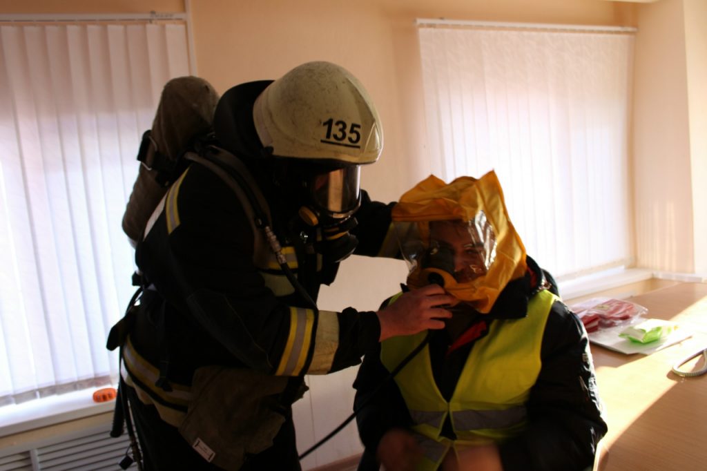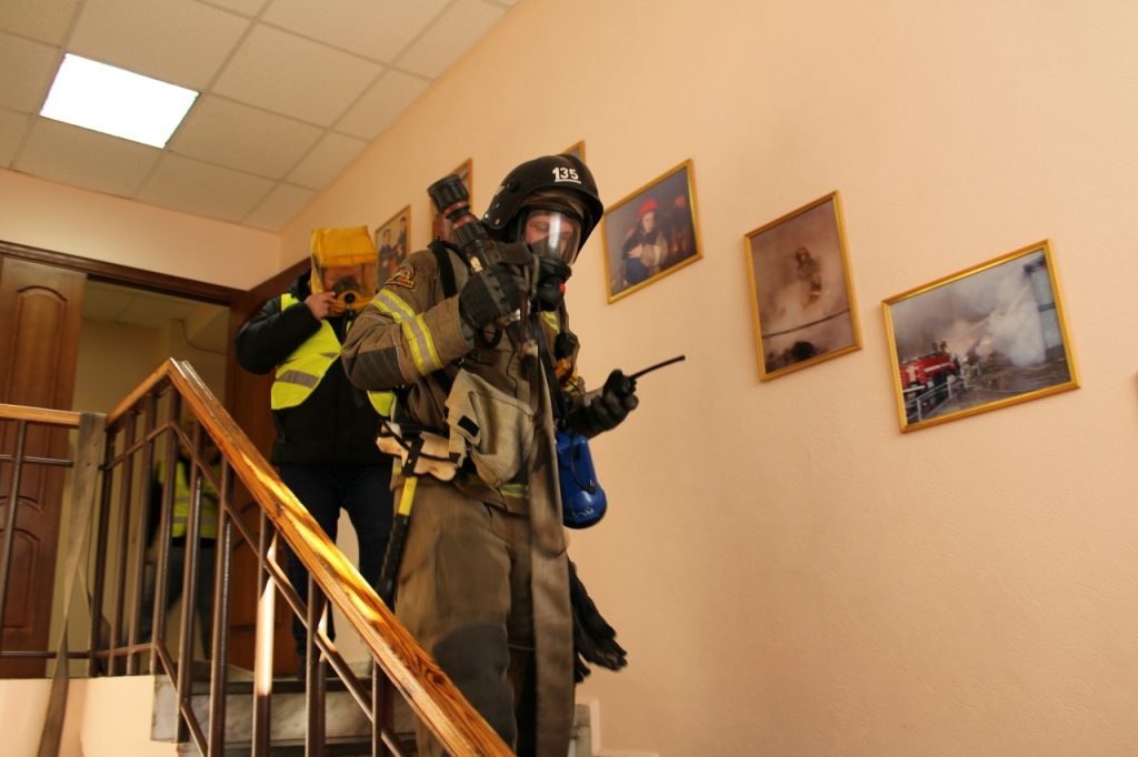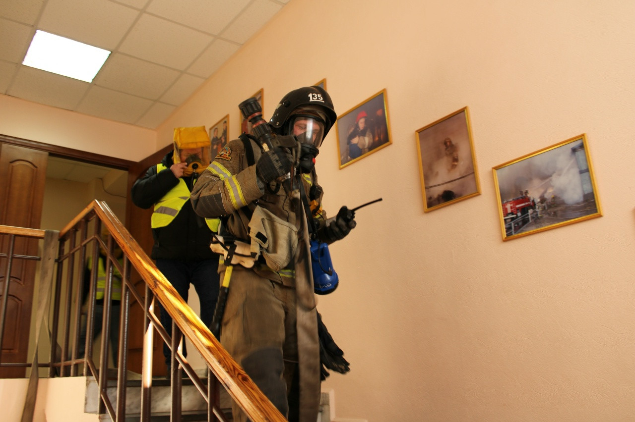 Сценарий предусматривал возникновение условного возгорания в конференц-зале, сопровождающееся сильным задымлением. Площадь пожара составила 45 квадратных метров.