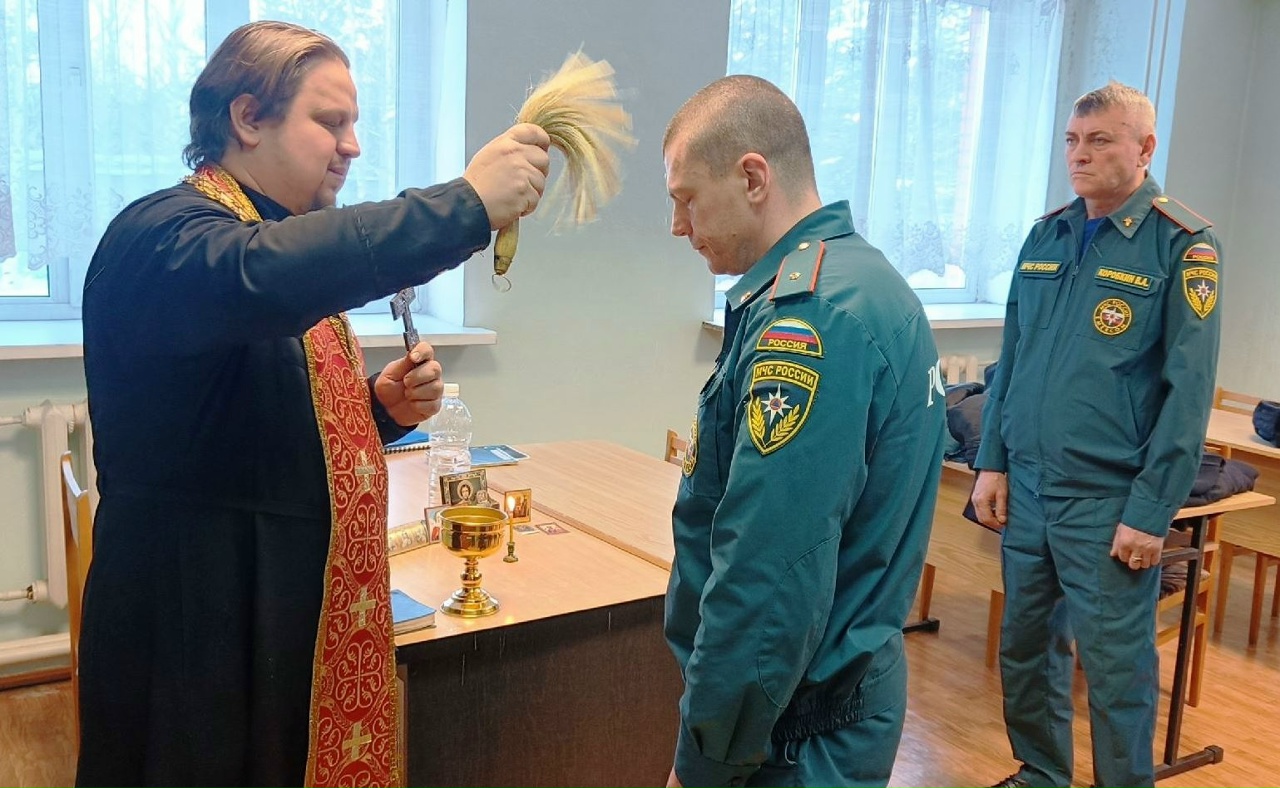 Святой водой были окроплены все помещения пожарной части, а также помещения отдельного поста. Отец Даниил освятил и пожарную технику, снаряжение и оборудование пожарной части.