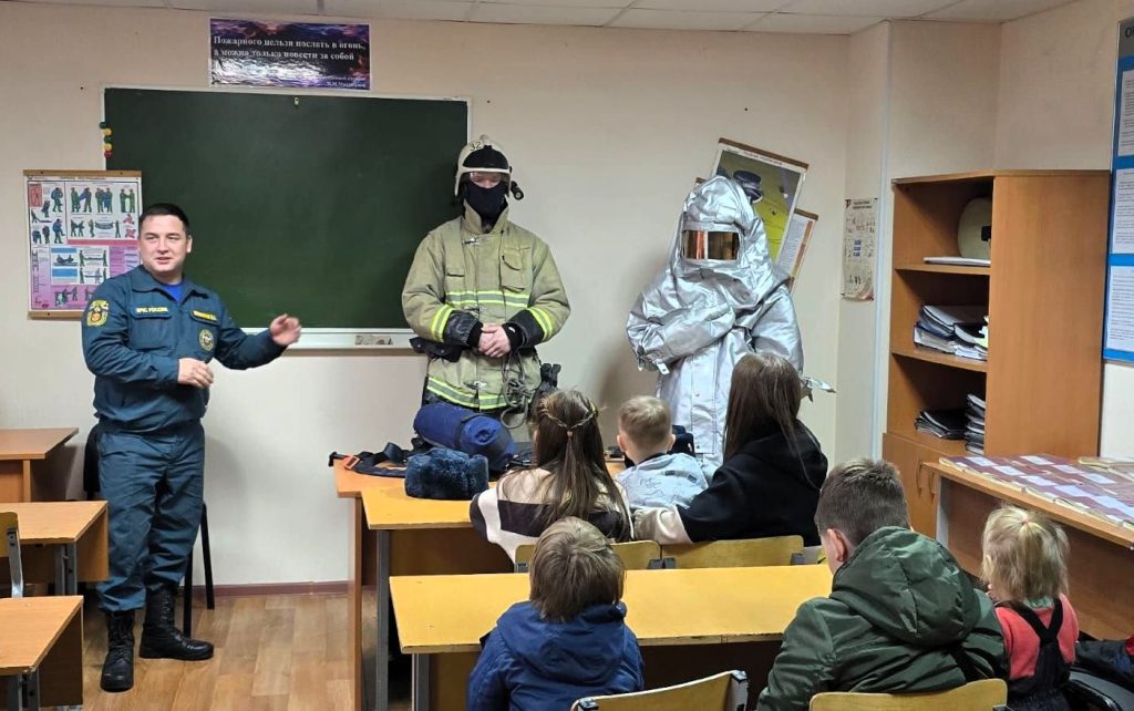 Огнеборцы продемонстрировали спасательные аппараты, которые используются при задымлении, а также теплоотражательный костюм для защиты пожарных от тепловых воздействий и вредных факторов окружающей среды.