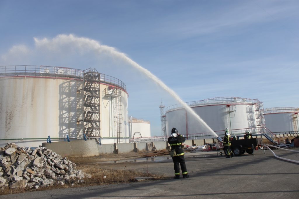 Отработка включала в себя комплекс задач, имитирующих реальные сценарии. В частности, отрабатывались действия по тушению горящего резервуара, защите соседних резервуаров, а также подаче лафетных и пенных стволов для эффективного охлаждения и локализации условного огня, после чего была проведена пенная атака на горящий резервуар.