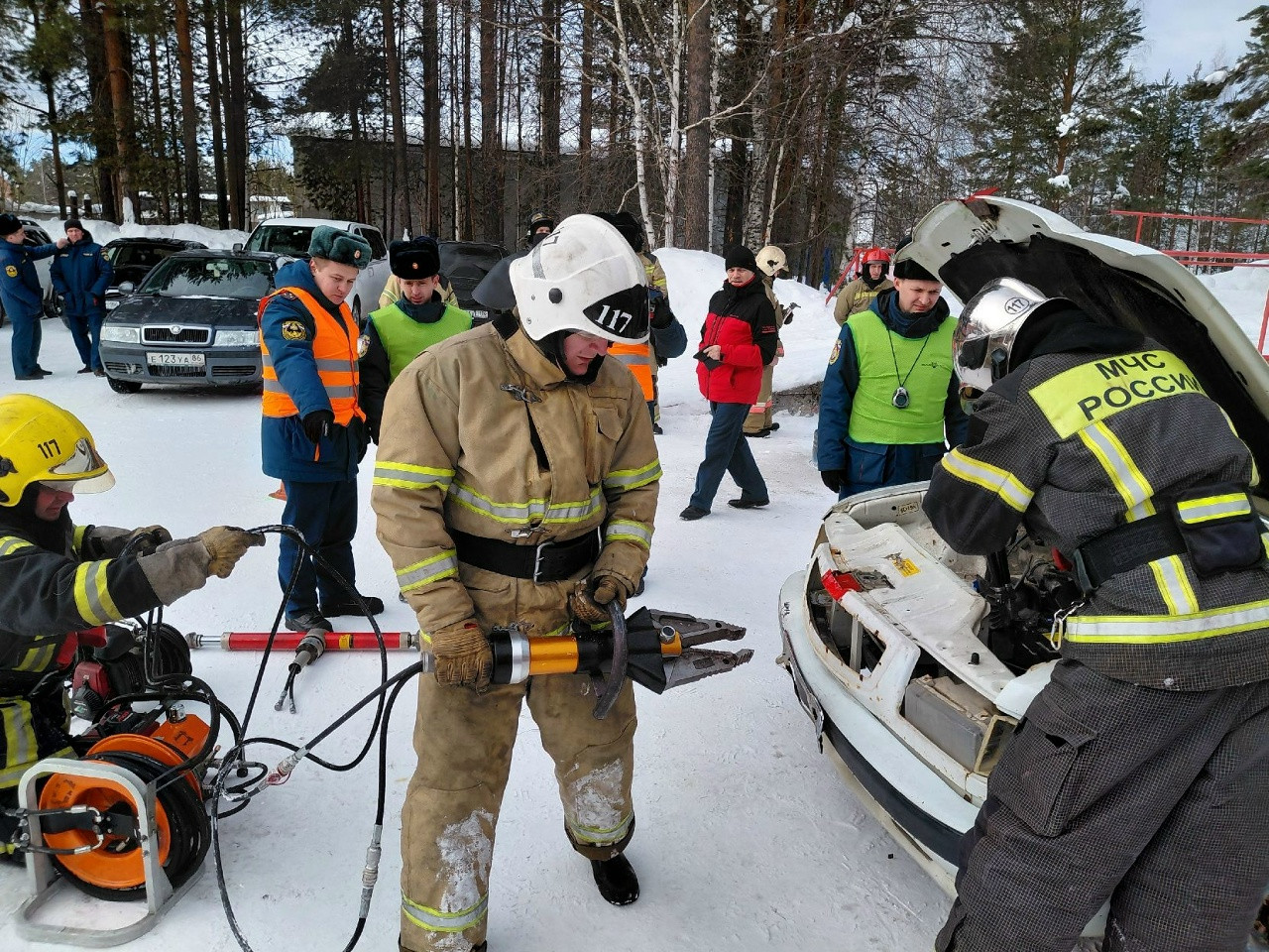 По сценарию, требовалось быстро оценить обстановку, стабилизировать поврежденный автомобиль, а затем с помощью гидравлического инструмента – освободить условных «пострадавших».